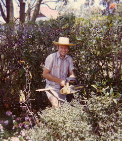 • His chain-saw and chopping down our big tree (and how he hurt his goolies when he slipped)